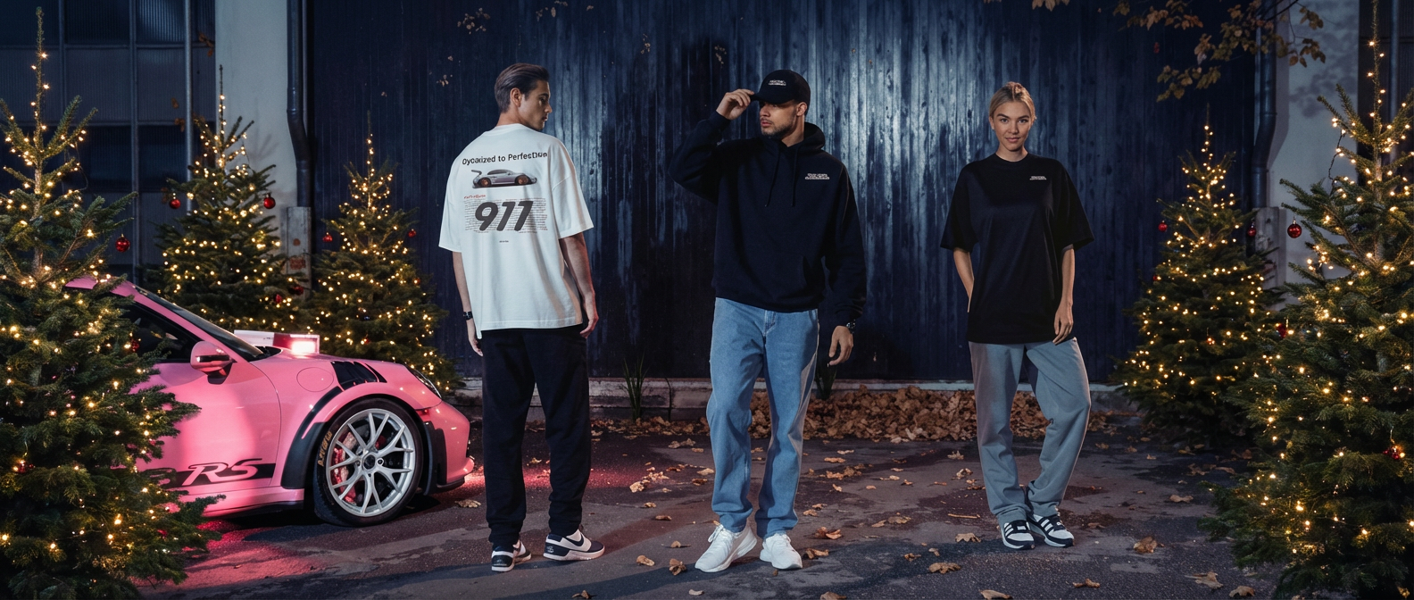 Línea afilada, alma de circuito. La quintaesencia Porsche, versión textil